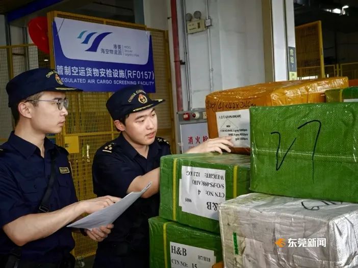 同样受益的还有跨境电商企业。数据显示,今年前6个月经空港中心跨境电商出口货量同比激增579%。东莞港空运供应链有限公司副总经理温媛云介绍,“去年4月,我们每月只有4个架次业务量,今年6月开始增加到每月13架次。海关应用X光机同屏比对技术,把单个包裹查验时间压缩到20秒内。”