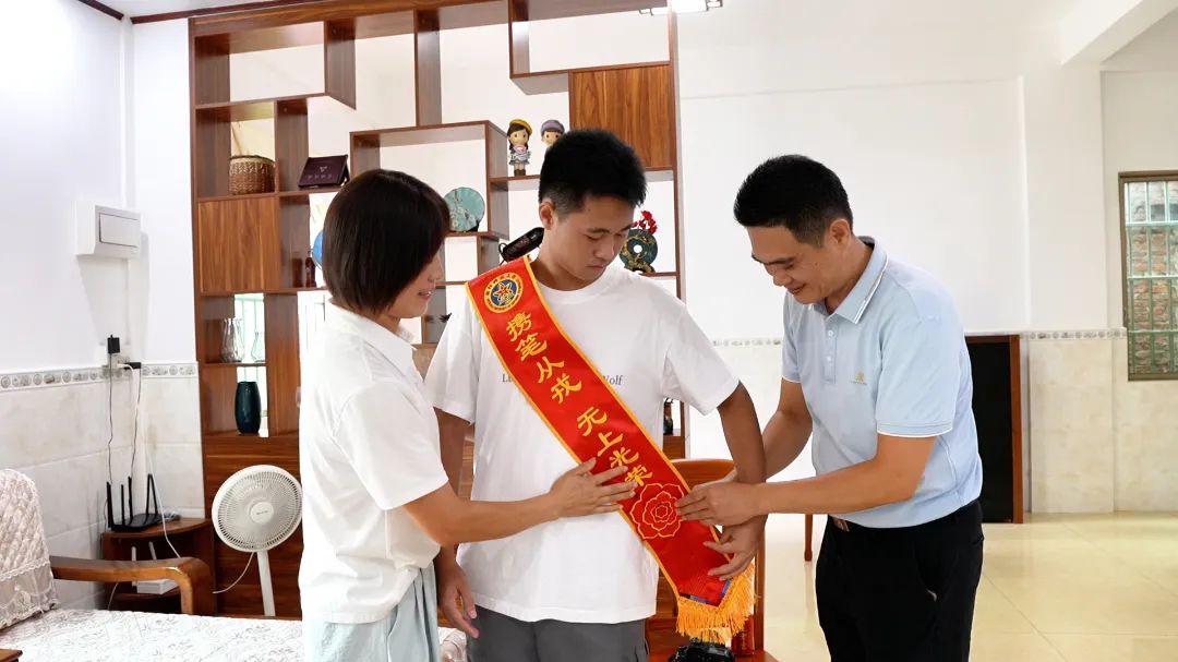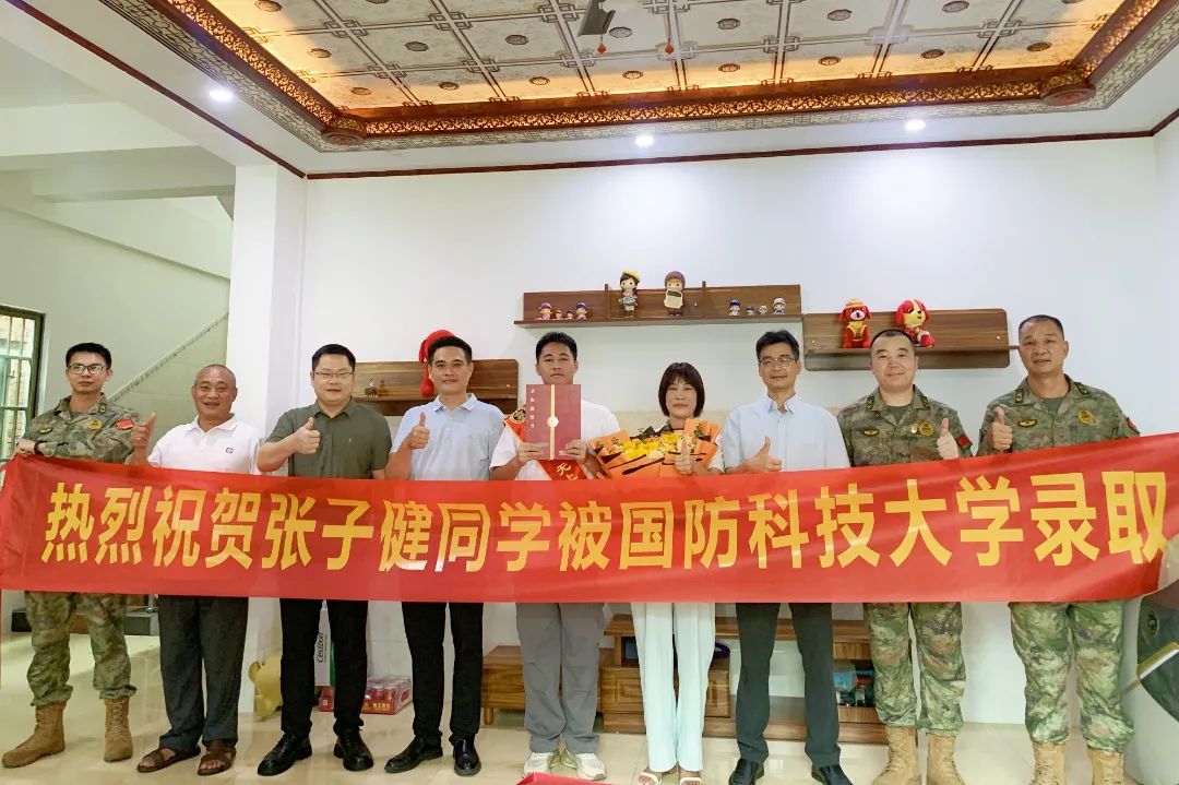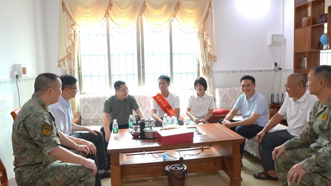 慰问组与张子健及其家人亲切交谈,高度赞扬张子健选择投身国防事业的志向,感谢其家庭对国防建设的支持与贡献。同时嘱咐其要勇攀知识高峰,锤炼钢铁意志,将青春热血融入强军伟业,为国防科技贡献力量,为家乡洪梅增光添彩。
