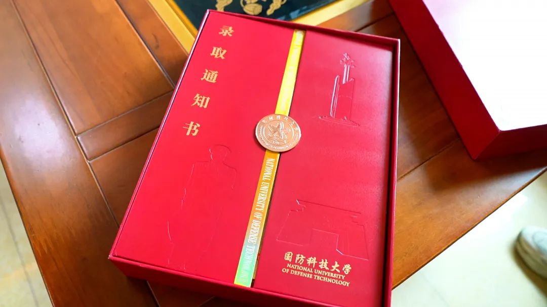 选择国防科大,对张子健而言绝非偶然。从小听着父亲讲述军旅故事长大,军营的号角、保家卫国的理想早已深深烙印在他心中。“得知被录取那一刻,全家激动万分,儿时的从军梦终于实现了!特别感谢家人无条件的支持。”张子健说。他引用录取通知书上“携笔从戎”的荣耀寄语,表示:“未来,我将为国防科研贡献自己的力量!”