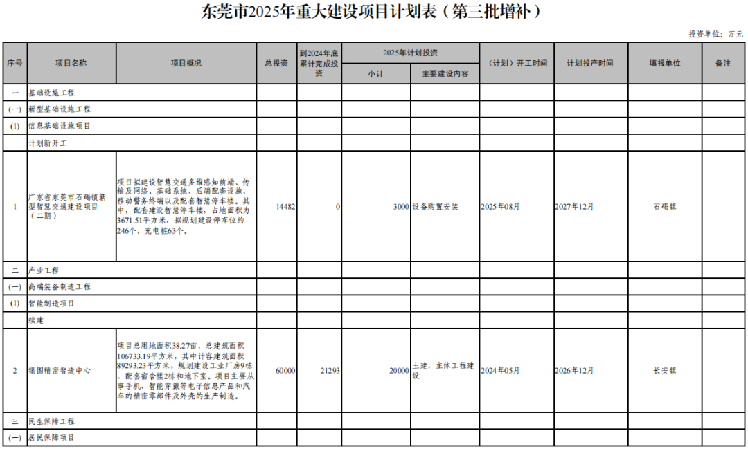 据悉,在增补的3个市重大建设项目中,石碣镇占据两席,分别为石碣镇新型智慧交通建设项目(二期)、石碣镇农村一二三产融合发展配套设施建设项目;另一项目是长安镇的银图精密智造中心。
