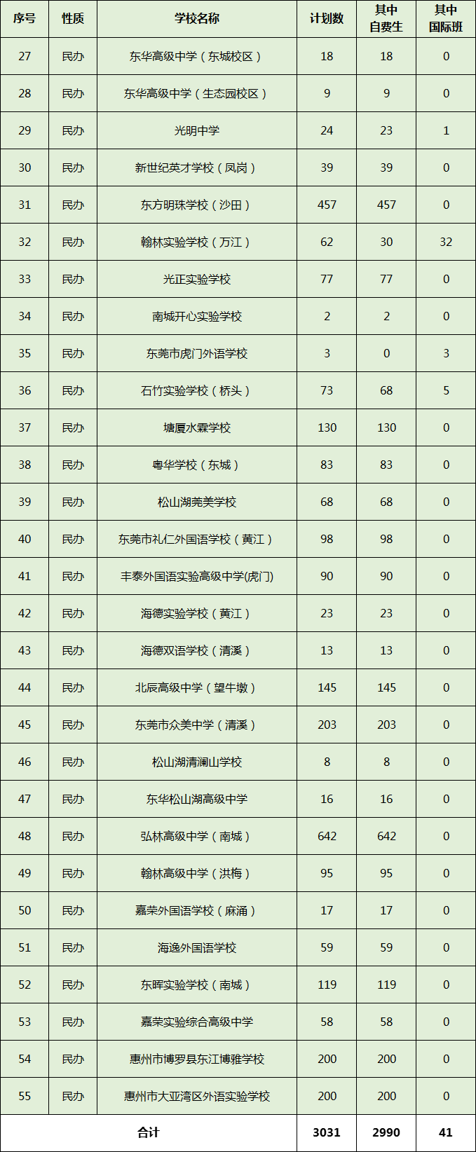 温馨提示:各学校简介及收费标准可在“东莞招考通”查阅,民办普通高中补录录取的考生(除国际班外)按自费生收费,国际班收费标准相对较高。