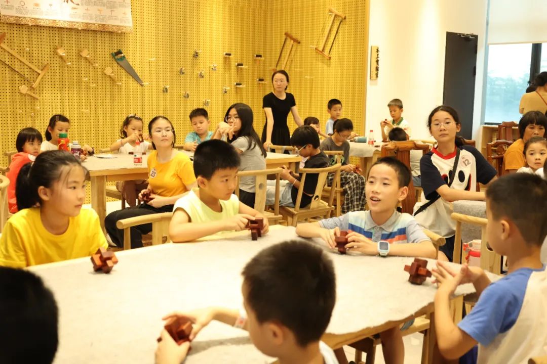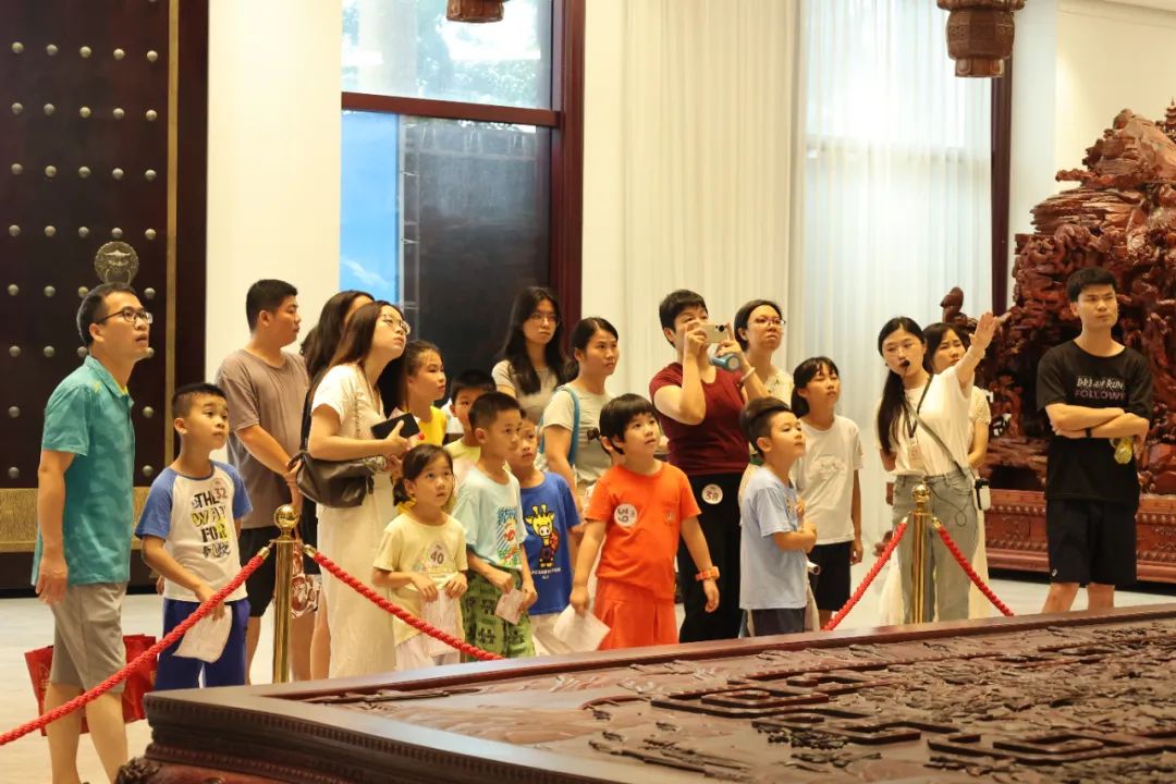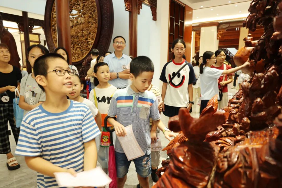 非遗课堂上,讲解员化身“启蒙导师”,详解紫檀“木中黄金”的由来——从百年生长周期、“十檀九空”的稀缺性,到明清宫廷使用史与“三分雕工七分打磨”的技艺门道,孩子们举着小手追问不停,小脑袋里攒满了新知与收获。