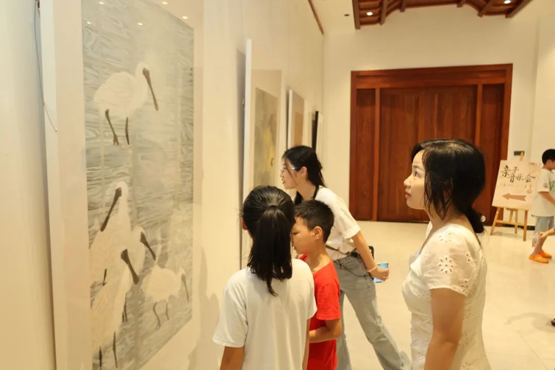 漫步东莞市美术家协会工笔画艺委首届画展,一幅幅工笔画作如徐徐展开的时光长卷,将千年东方美学温柔铺陈。亲子家庭凑近看花鸟图,细腻纹理与禽鸟羽毛清晰可见;驻足山水画前,感受“致广大而尽精微”的哲思。