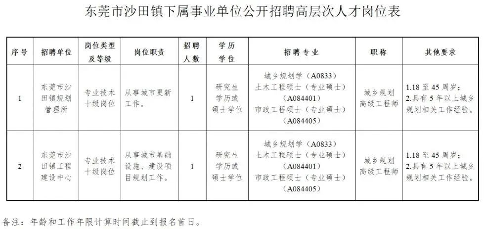 东莞市沙田镇下属事业单位公开招聘高层次人才2人