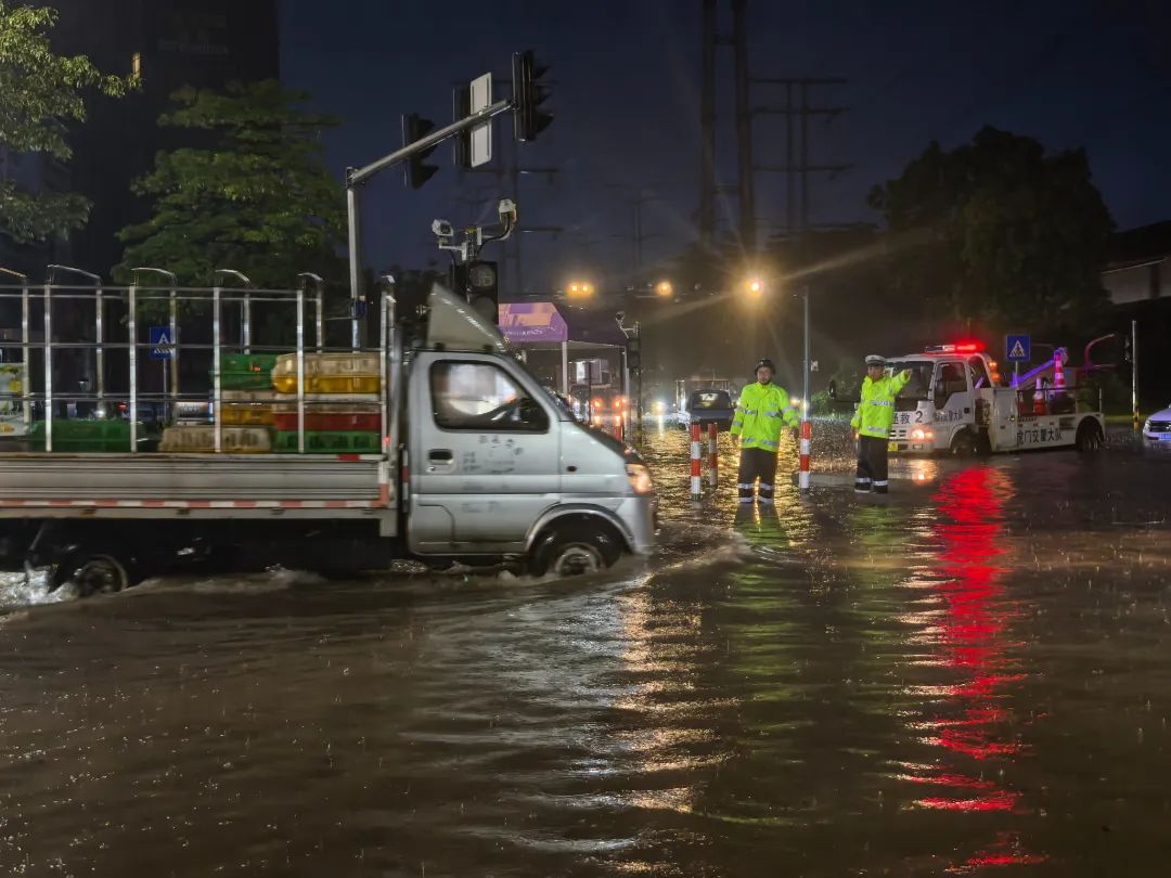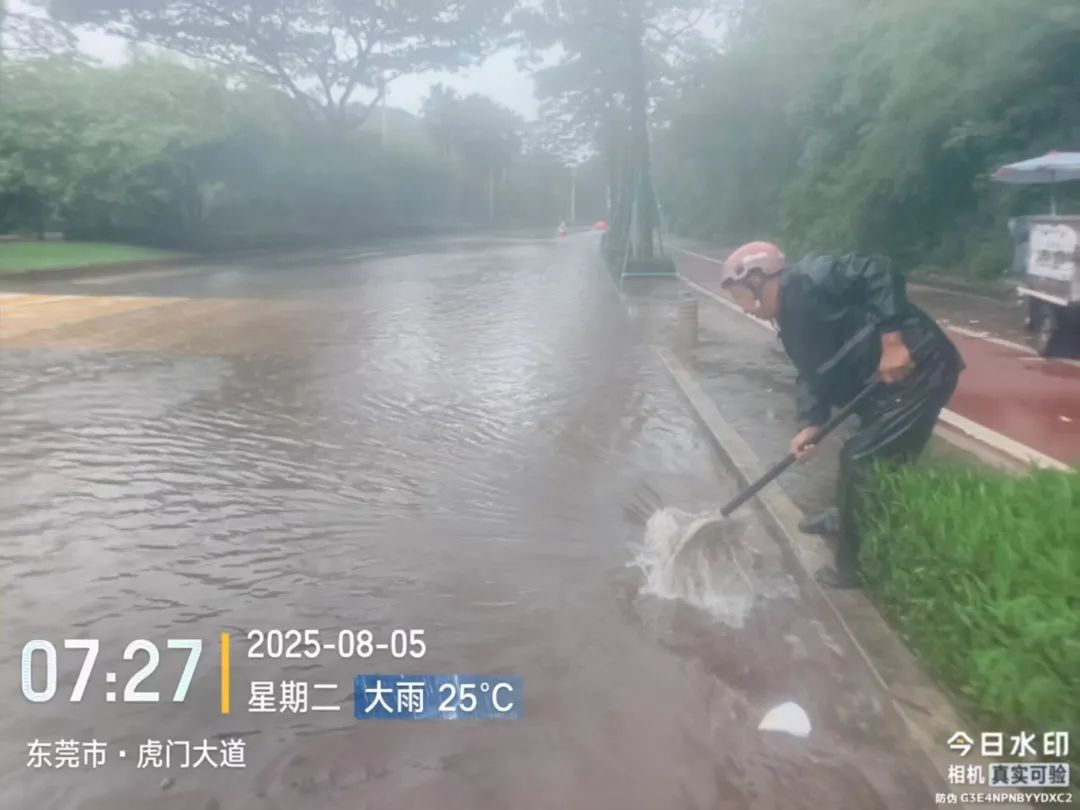 虎门镇水务工程运营中心、公安交警、城管分局组成“三人小组”对重点路段加强蹲点值守,加强排查积水点、清理杂物、疏通管道,全力加速排水。