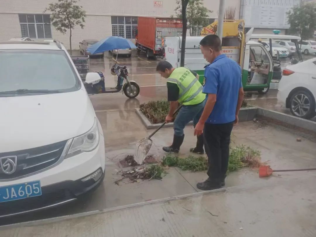 企石房管所督促各小区物业服务企业落实防汛措施,排查地下车库,楼栋外墙及大树枯枝以防高空坠物,清理排污管道,整理防汛物资等工作。