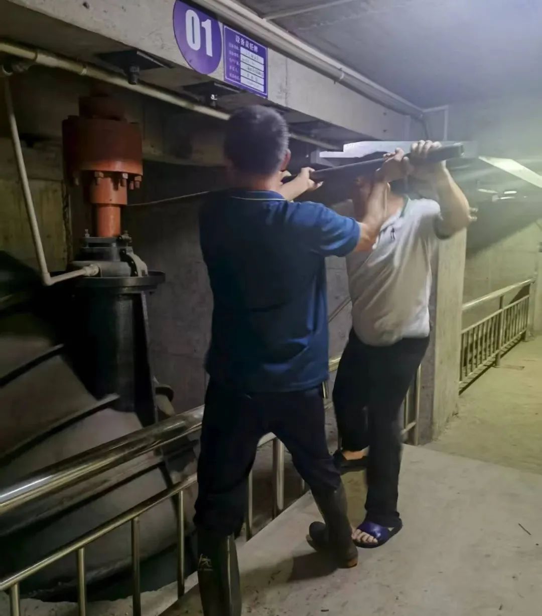 企石水务运营中心在暴雨期间加强水利工程巡查值守,落实工程安全度汛措施。做好在建水务工程的检查及防护,排查消除施工现场安全隐患,落实安全度汛措施;同时,严格落实“三人小组”应急工作机制,及时清理淤塞管渠、雨水箅子,确保排水设施运行顺畅;此外,安排工作人员持续巡查东江沿线。