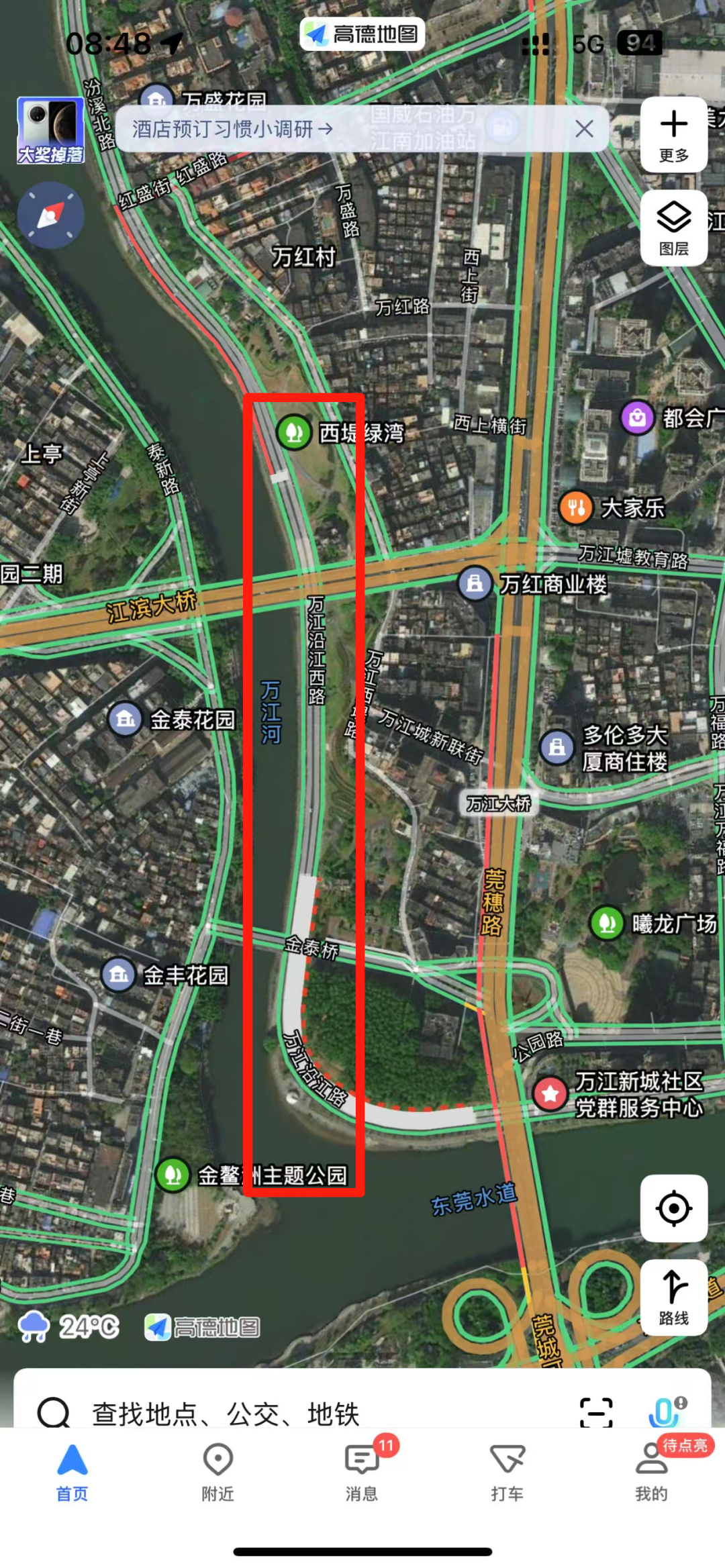 由于受东江外江河水潮涨影响,沿江路金泰桥至江滨桥底出现河水倒灌情况,现实施交通管制,解封时间另行通知,请市民群众绕道行驶。