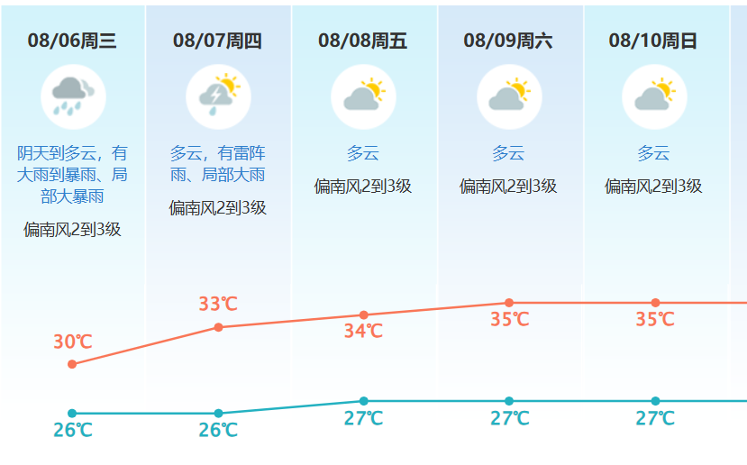 预计我市6日有中到大雨;7日降雨减弱,有雷阵雨、局部大雨。