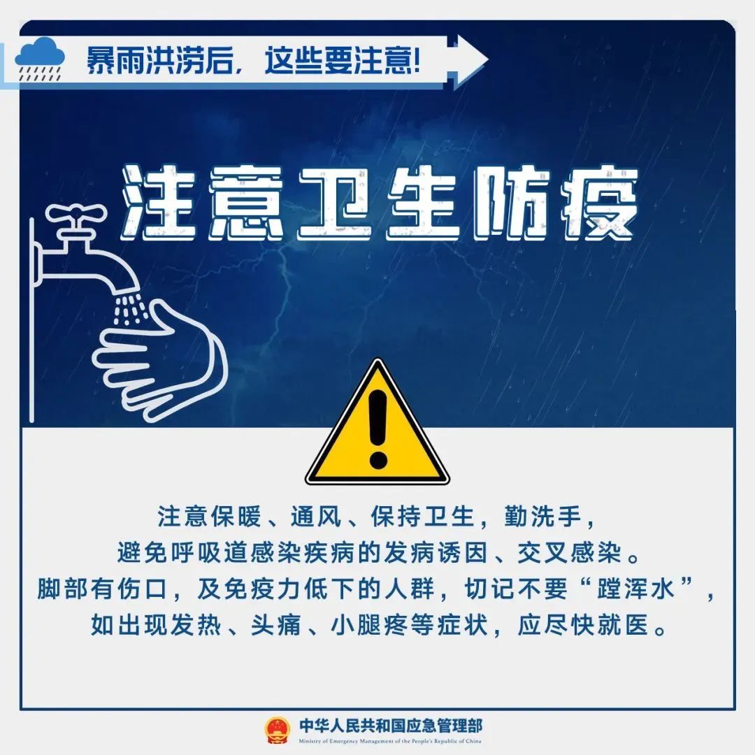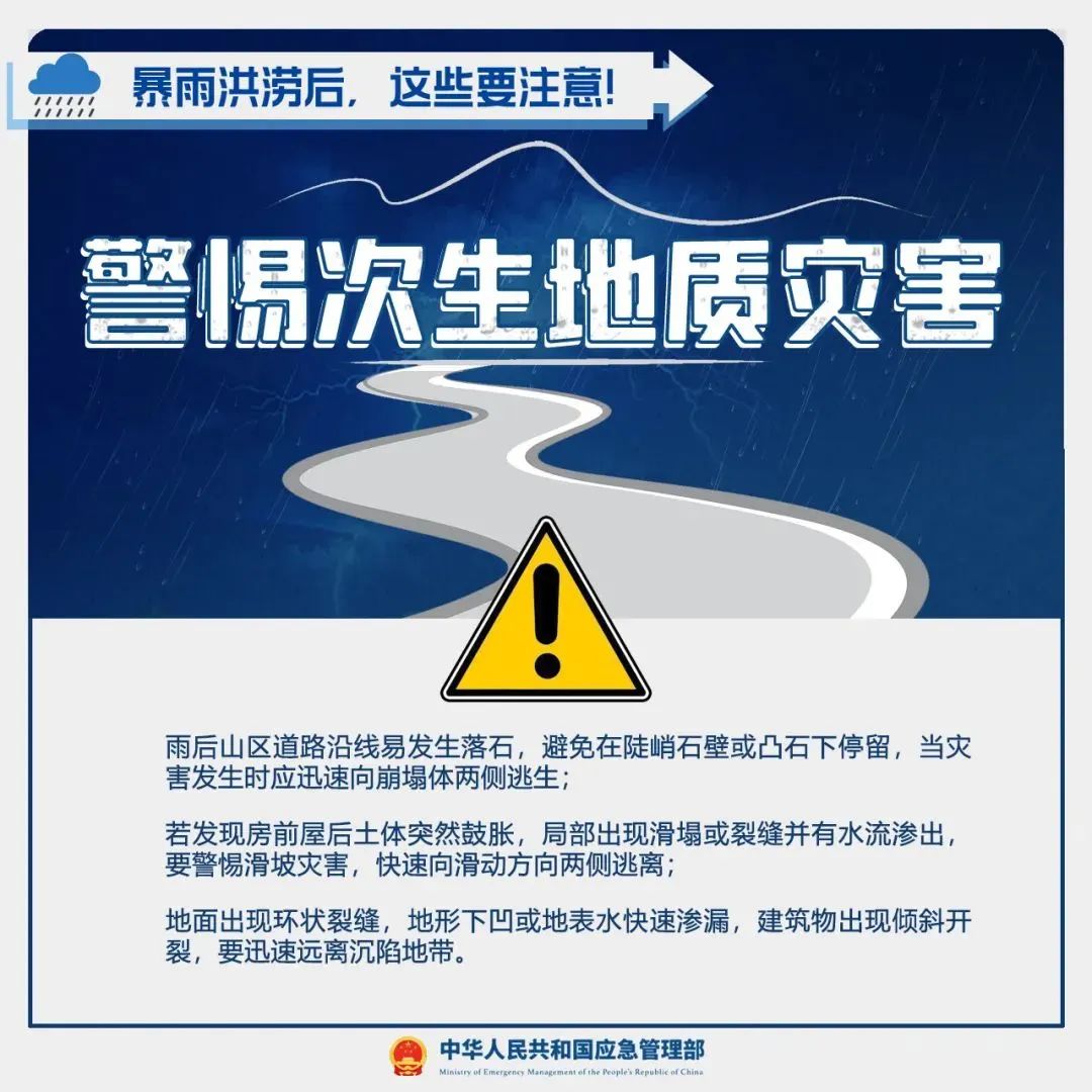暴雨洪水过后,泥石流、滑坡等灾害风险大,也易引发疾病,暴雨洪涝后应该注意哪些事项?