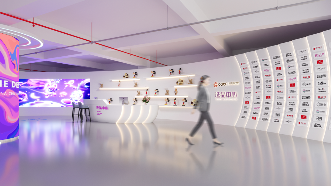线下选品中心坐落于中国潮玩之都·漫博中心,面积约4000㎡,是目前全国面积最大、产品最多的潮玩选品中心,通过智能供需匹配系统,以延展500米的开放式货架陈列形式,完整展示涵盖"IP、产品、产能、渠道、服务"的潮玩全产业链生态。中心可陈列约10000件产品,并定期动态更新精选产品库,确保与市场趋势实时同步,为采购商提供沉浸式选品体验及一站式产业服务。