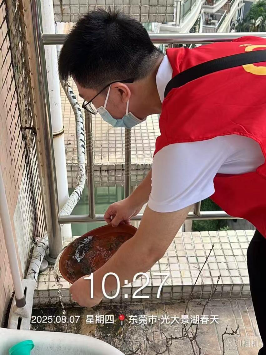 在东泰社区光大景湖春天,我协助开展社区疫情防控工作,身着党员“红马甲”上门传递上级政策、倾听群众诉求,并参与到爱国卫生运动之中,深入小区的绿化区清理杂物、查看植被花盆积水情况。一次次上门倾听、一回回俯身实干,体悟到基层事务虽细微,却关乎居民生活品质,也坚定我扎根基层、服务群众的决心,以点滴行动诠释党员的初心与担当。