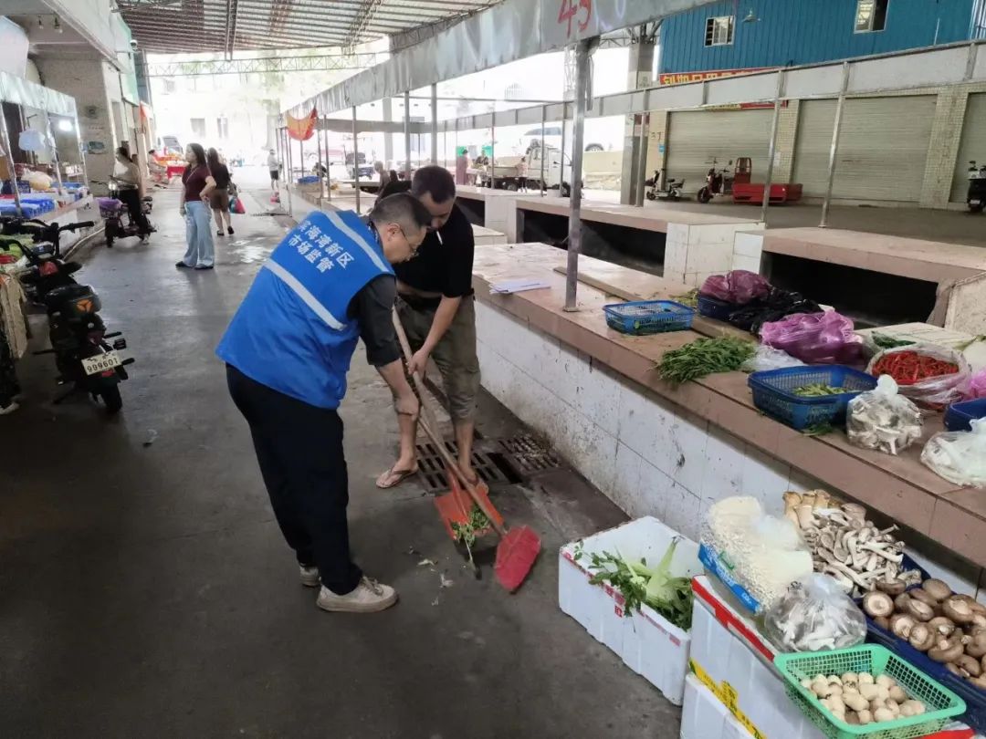 在农贸市场,工作人员对市场摊位、下水道等进行了全面排查,重点清理市场内积水容器、废弃杂物及卫生死角,清运堆积垃圾。