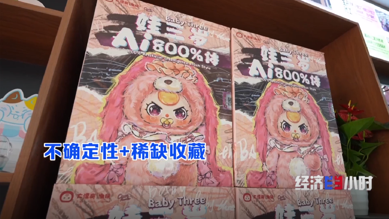 在漫博会现场,记者注意到了一只毛茸茸、童趣十足的潮玩,名叫“娃三岁”。该IP联合创始人之一刘洪国表示,当前潮玩行业之所以火爆,是因为精准“拿捏”了情绪经济。普通玩具主要面向儿童,而潮玩的客户主要是青少年和成年人,潮玩是分系列销售,如果有隐藏款,消费者会一直买下去。这种“不确定性+稀缺收藏”,激发了消费者的购买欲。