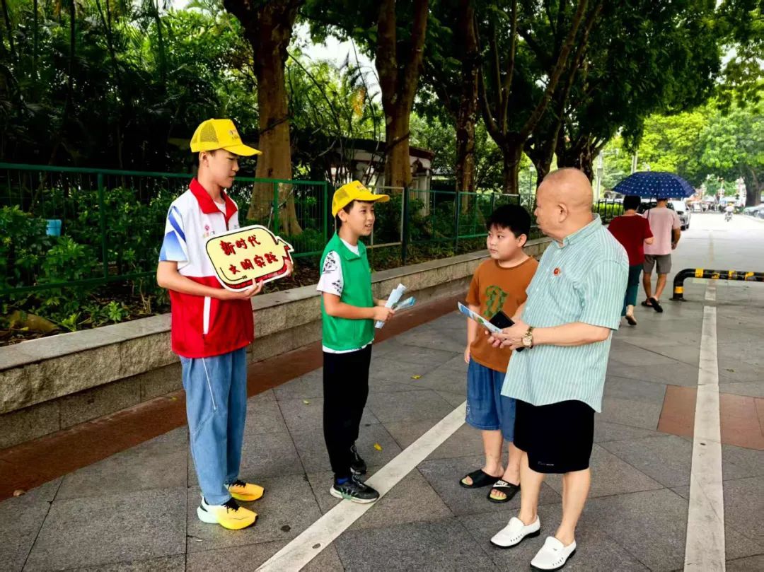 与此同时,“小卫士”们化身文明宣传员,向过往市民热情派发宣传资料。资料内容涵盖文明出行、文明养宠、垃圾不落地及灭蚊防蚊等实用知识。他们结合资料内容耐心讲解,向大家传递文明理念,倡导市民从自身做起,养成良好的生活习惯,共同营造整洁、有序、文明的城市环境。