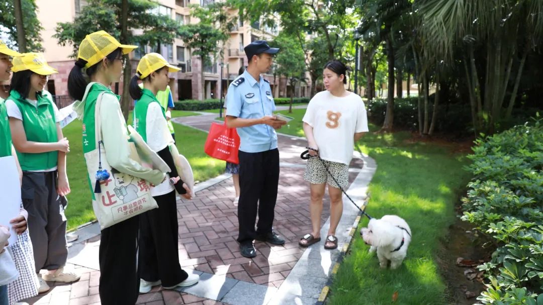 8月15日下午,企石镇新时代文明实践中心联合团委、公安分局、房管所在东江豪门小区开展“文明小卫士·暑期莞一夏”莞邑青少年文明志愿服务活动,青少年志愿者们化身“文明小卫士”,通过文明宣传、行为劝导等形式,向居民广泛宣传文明养犬的重要性,普及防蚊灭蚊防控知识,推动形成“文明家园共建、幸福生活共享”的社会风尚。