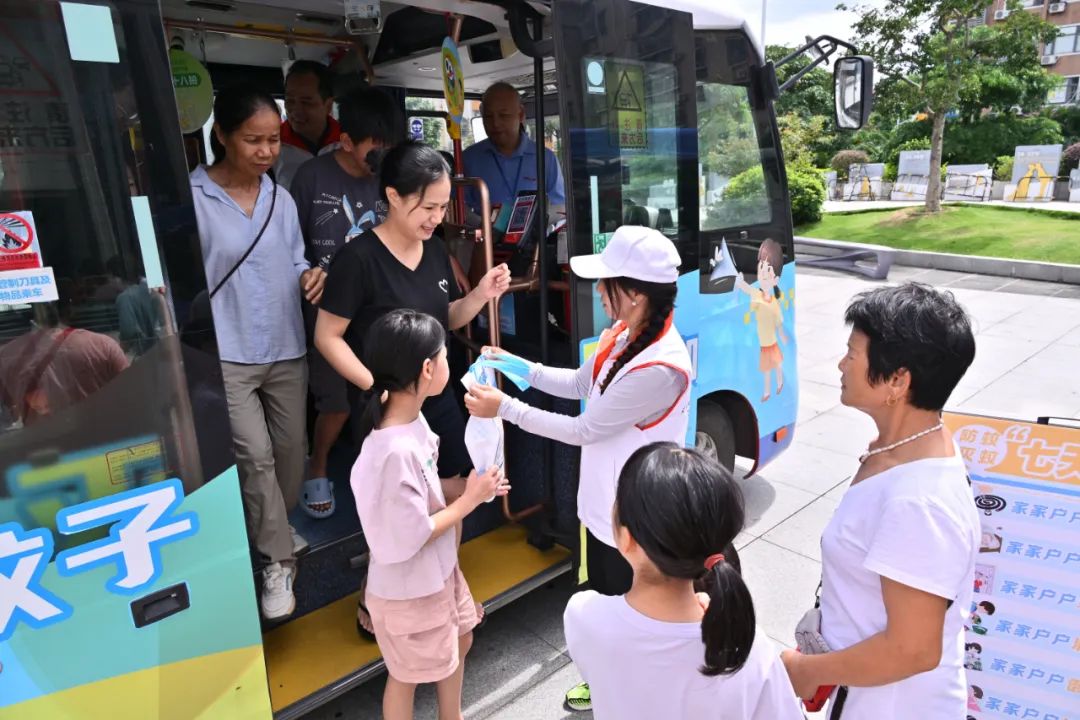 新时代文明实践志愿者们依托互动宣传摊位和主题宣传巴士,开展系列宣传科普活动。巴士内凉爽舒适,居民们在舒爽的环境中观看防蚊灭蚊宣传短片、参与有奖知识问答、领取防蚊暖心包,轻松掌握科学灭蚊技巧。