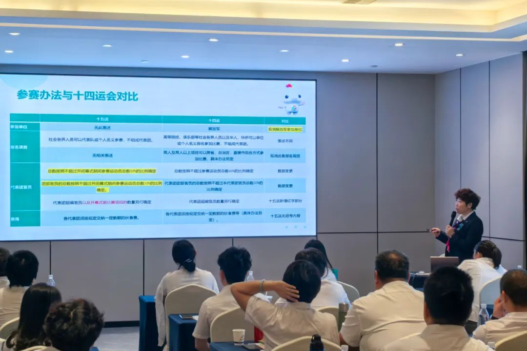 陈宇博表示,专业的技术官员(辅助裁判员)是赛事公平公正的守护者,更是体育精神的传播者。在十五运会蓄势待发之际,本次培训班的举行,为大家交流专业经验、精进执裁技能搭建了平台。他希望,各位技术官员(辅助裁判员)能够珍惜此次学习机会,在培训中互学互鉴、共同提升,以过硬的执裁能力为赛事公平公正保驾护航。