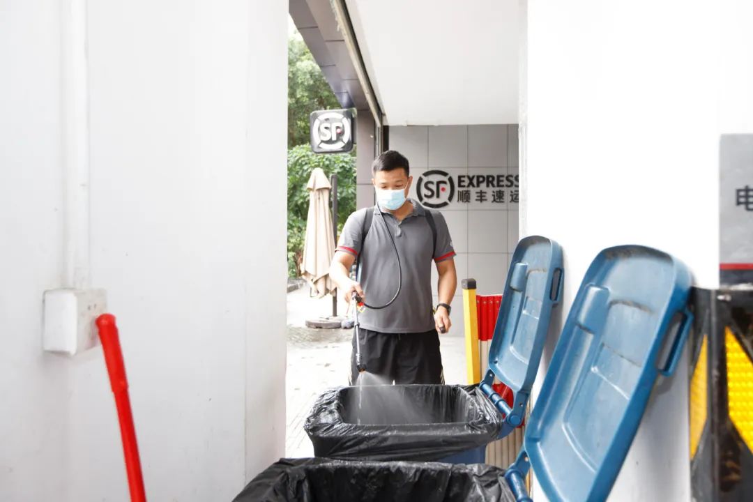 与此同时,顺丰速递汇峰中心网点每天坚持清积水,并对网点及周边的垃圾桶、卫生死角、通道等蚊虫易孳生区域进行消杀,从源头阻断蚊虫孳生的温床,保证网点的干净整洁。