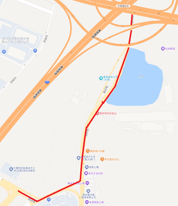 (一)屏安路-中子源路-象和路-美景西路-松水路-高雄路-松山湖东高速路口。