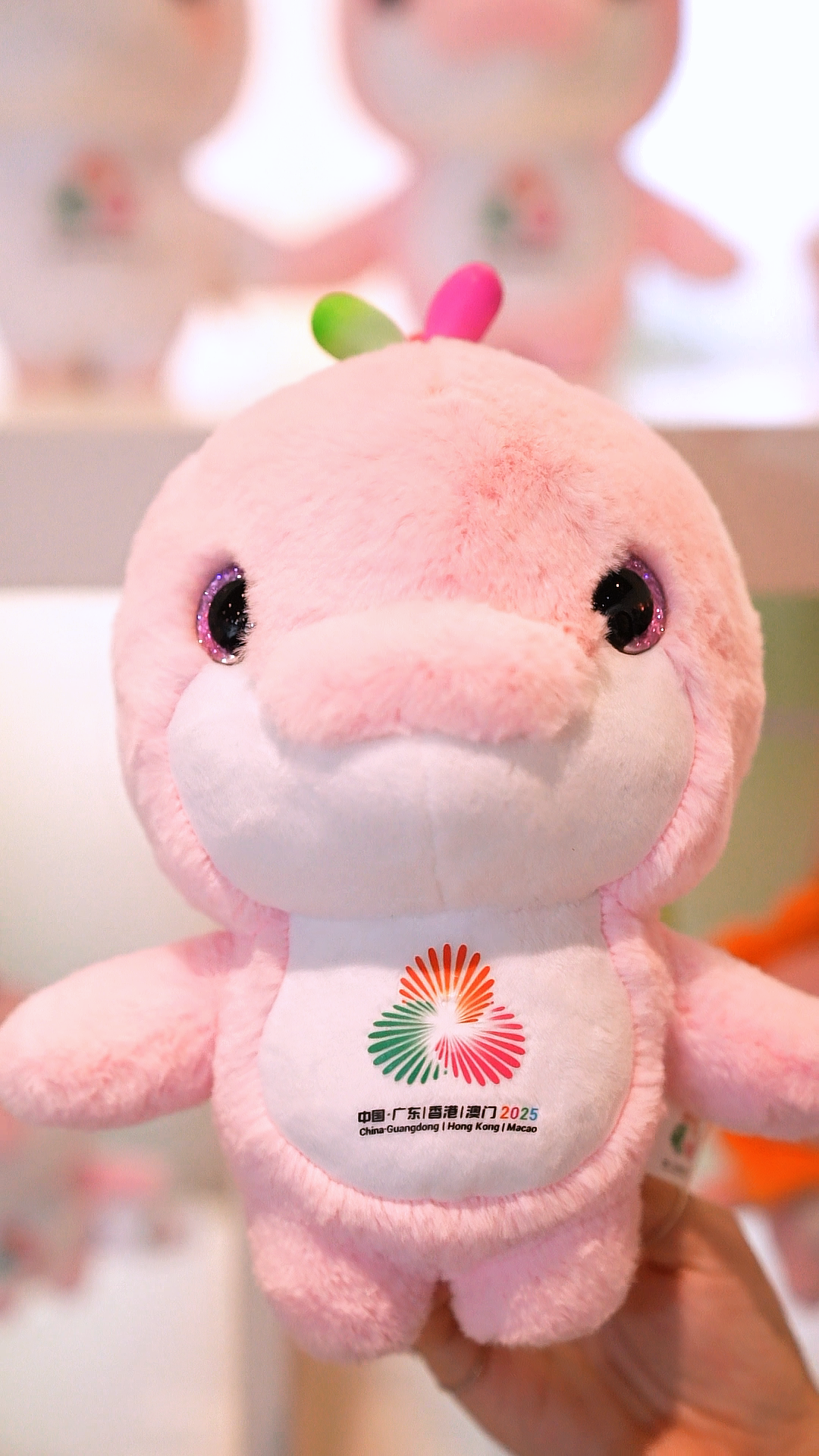 “我是粉海豚‘乐融融’,是以中华白海豚为原型设计的吉祥物,头顶有象征广东、香港、澳门的三朵小水花,尾巴是心形,寓意着三地同心,全民欢庆。”这是正在作自我介绍的“乐融融”AI版毛绒公仔,是由第十五届全国运动会特许生产商之一的东莞康达玩具礼品有限公司生产制造。