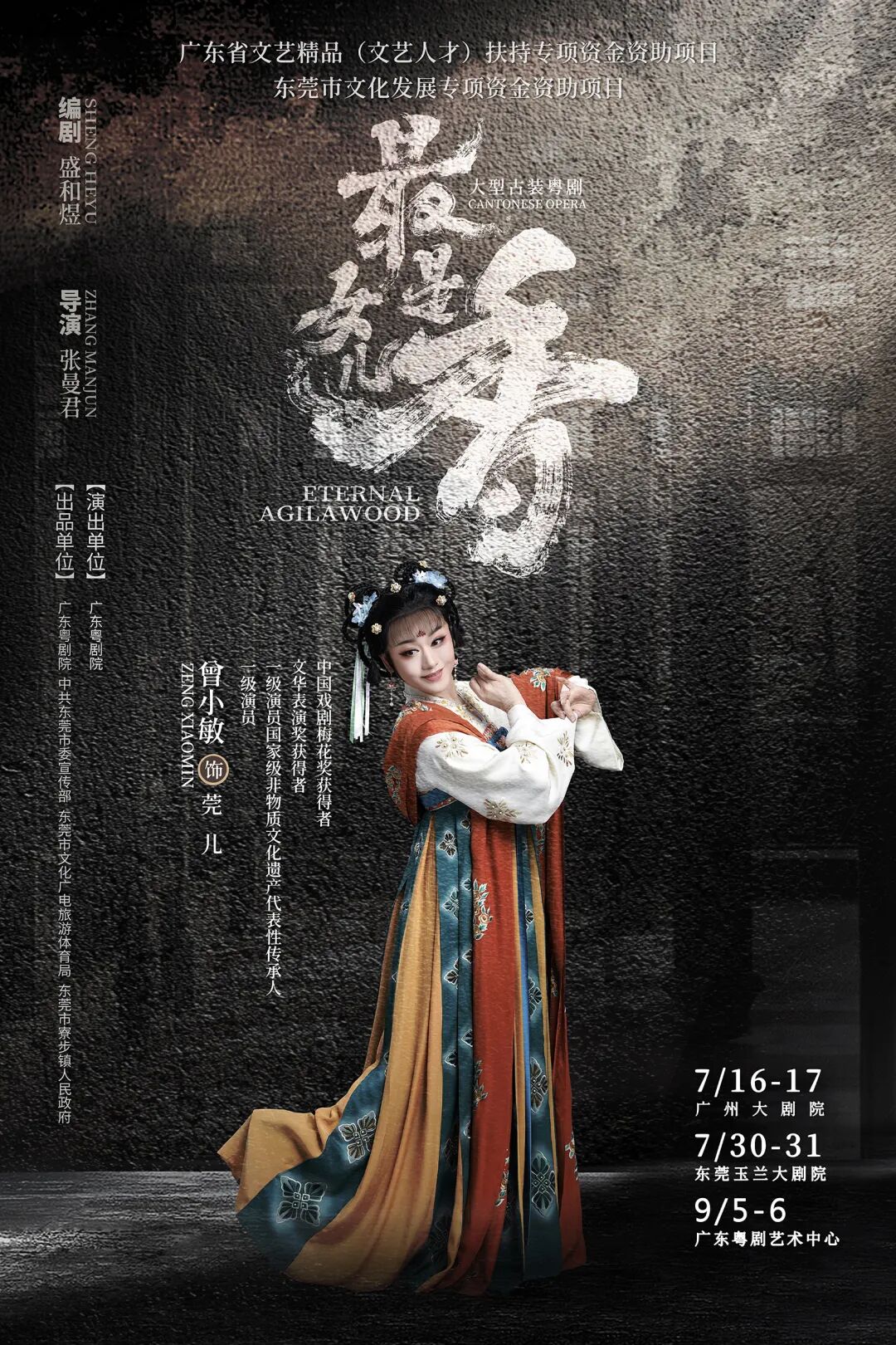 该剧由一级编剧盛和煜执笔,中国戏剧梅花奖获得者、著名戏剧导演张曼君担任导演及粤剧改编,青年戏剧导演胡家伟担任粤剧改编和执行导演,文华奖、梅花奖双料得主曾小敏与一级演员、实力派文武生黄春强领衔主演,以“穿越千年”的宏大叙事结构,串联起先秦至现代的时空跨度,将莞香文化与中国历史重大事件交织呈现。