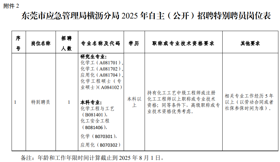 根据工作需要,东莞市应急管理局横沥分局面向社会招聘1名特别聘员,现公告如下:
