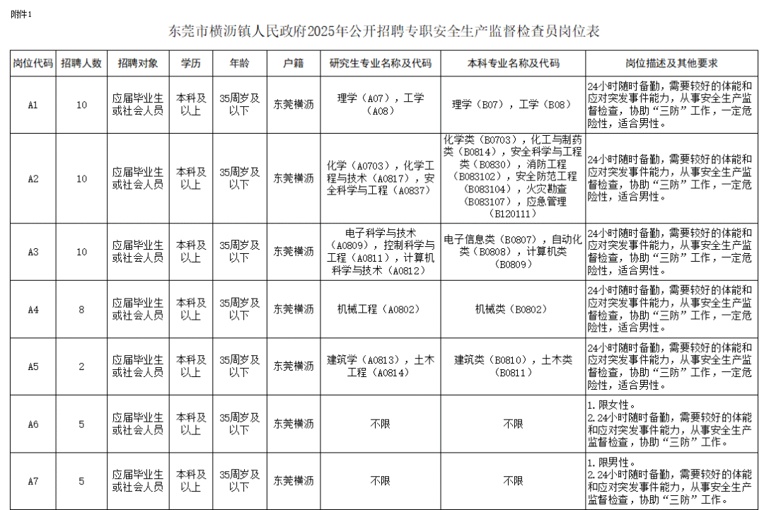为加强安全生产管理,东莞市横沥镇拟面向社会公开招聘专职安全生产监督检查员50名,现将有关事项公告如下: