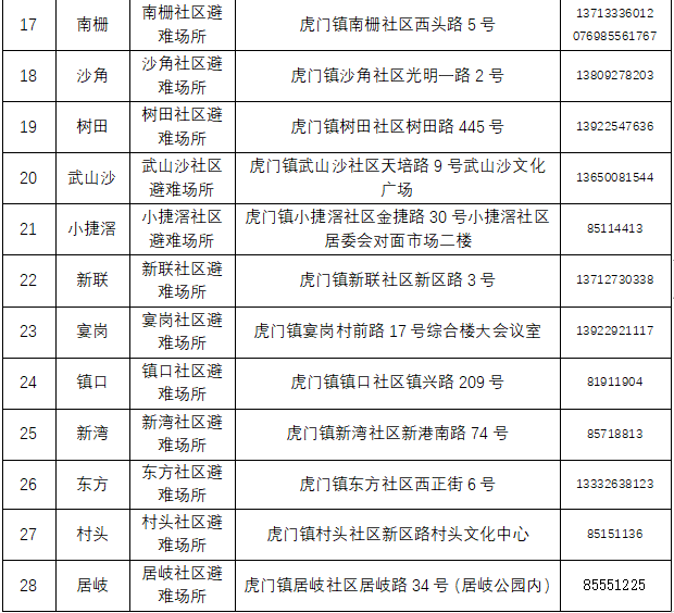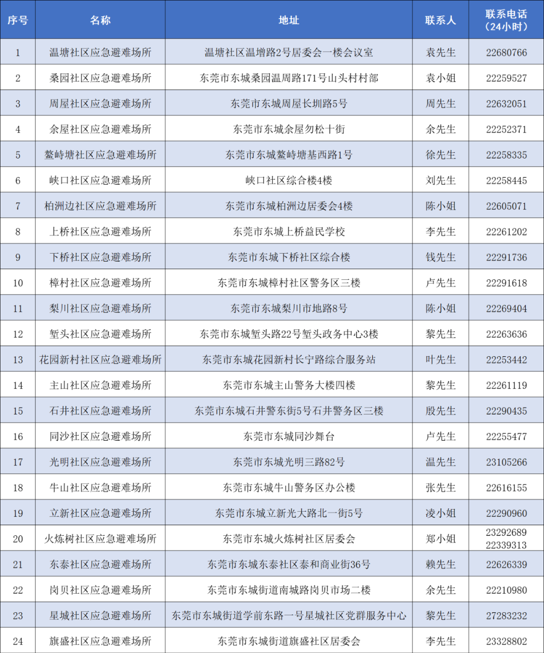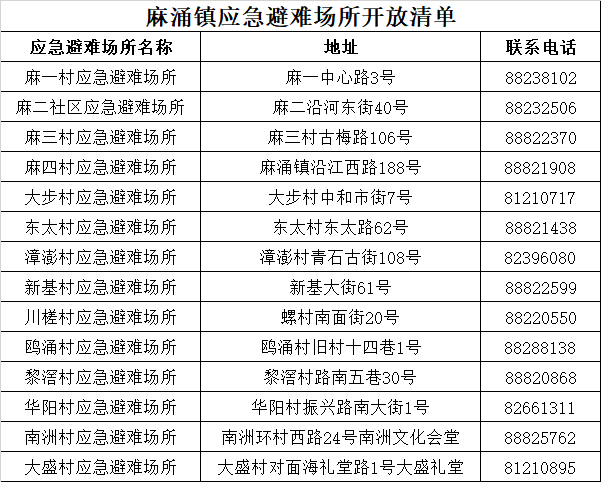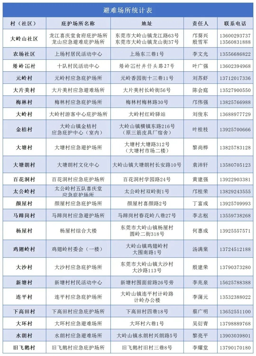 目前,大岭山镇23个村(社区)已开放应急庇护场所。