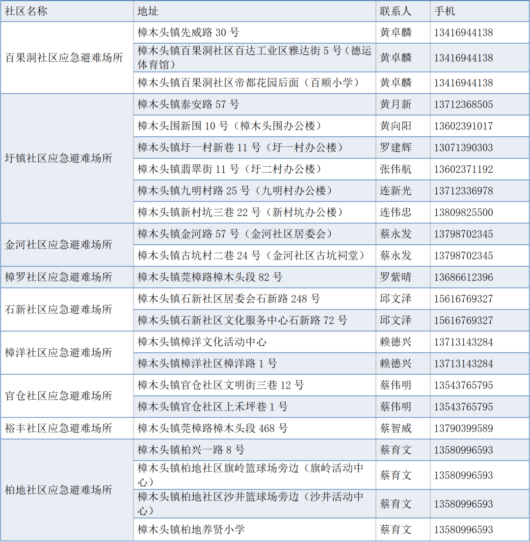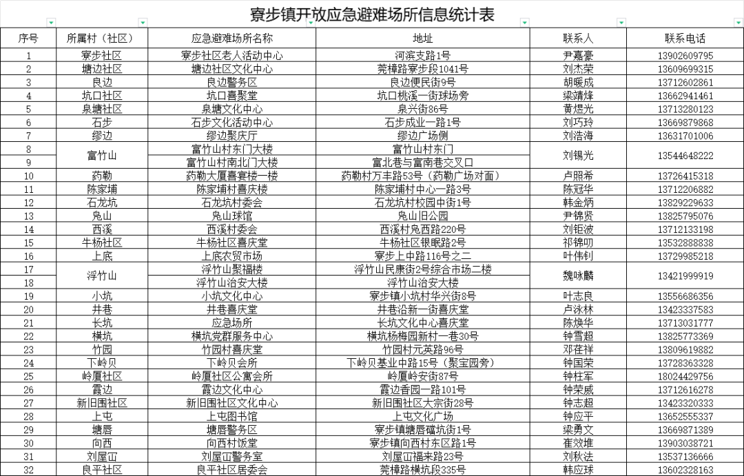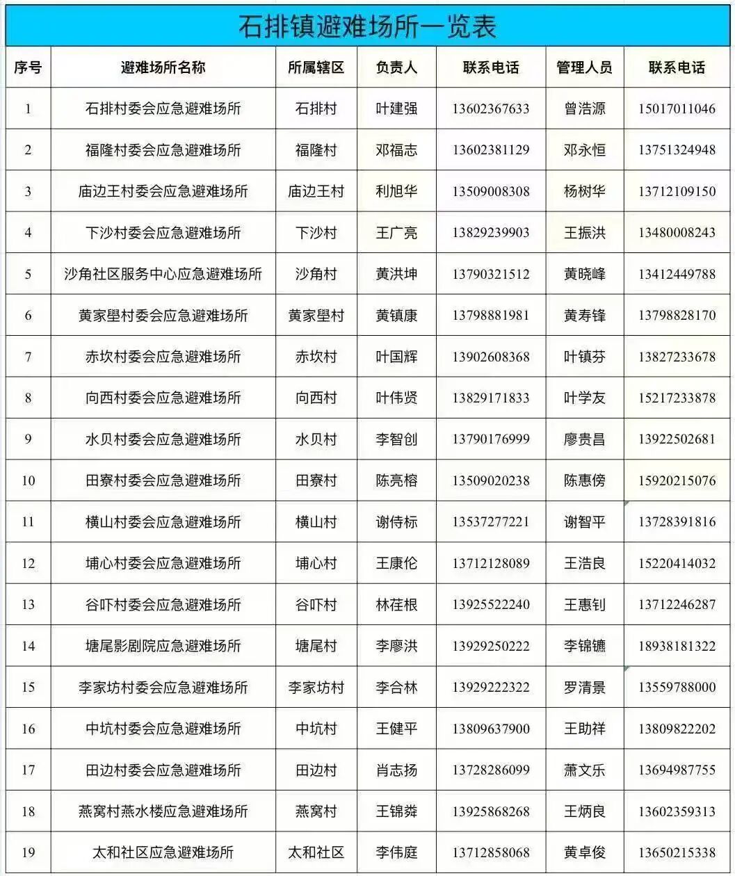 目前,凤岗镇17个应急避难场所已经开放,有需要的群众可就近到以下避难场所↓↓