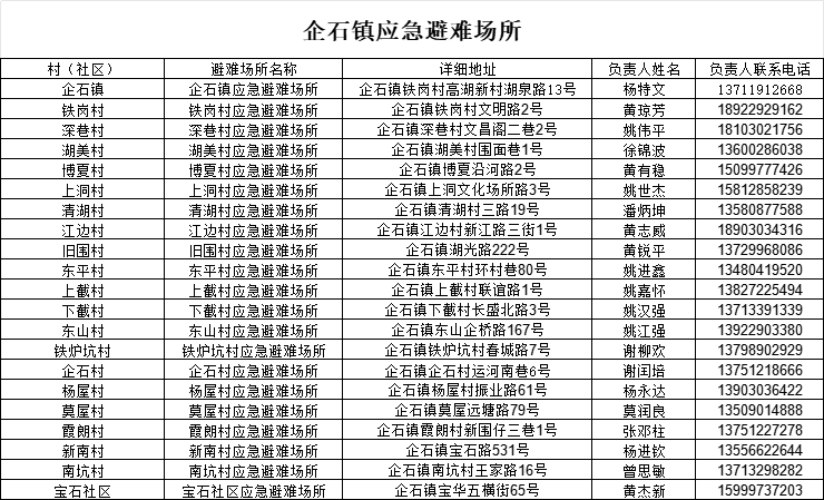 目前企石辖区21个应急避难场所已做好充足的防御物资储备,24小时开放。