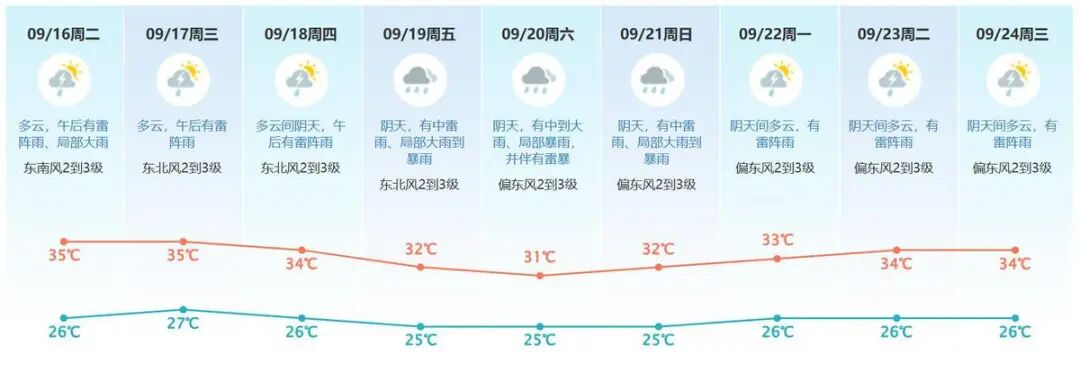 预计我市16—19日以多云为主,天气炎热,午后有雷阵雨,局部有短时强降水、雷雨大风等强对流天气;