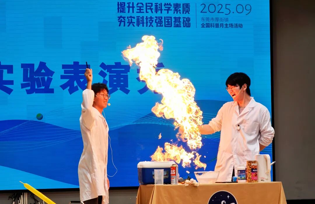 超燃火焰掌、像薯片一样脆裂的玫瑰花、会缩小的气球……一场充满想象力的科学实验表演秀在厚街上演。