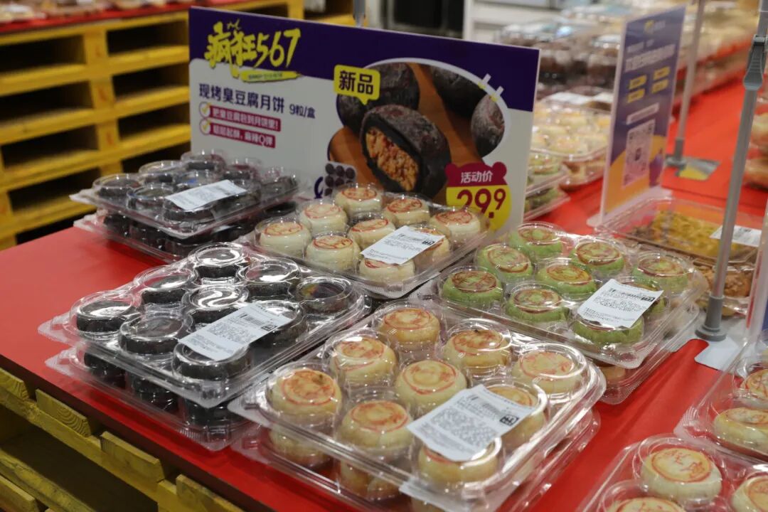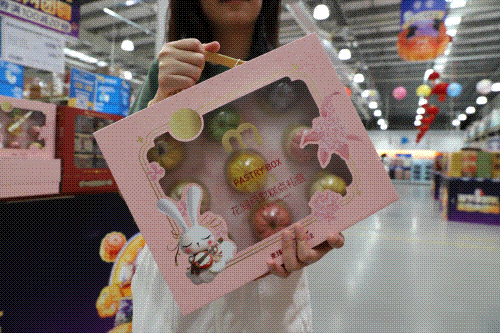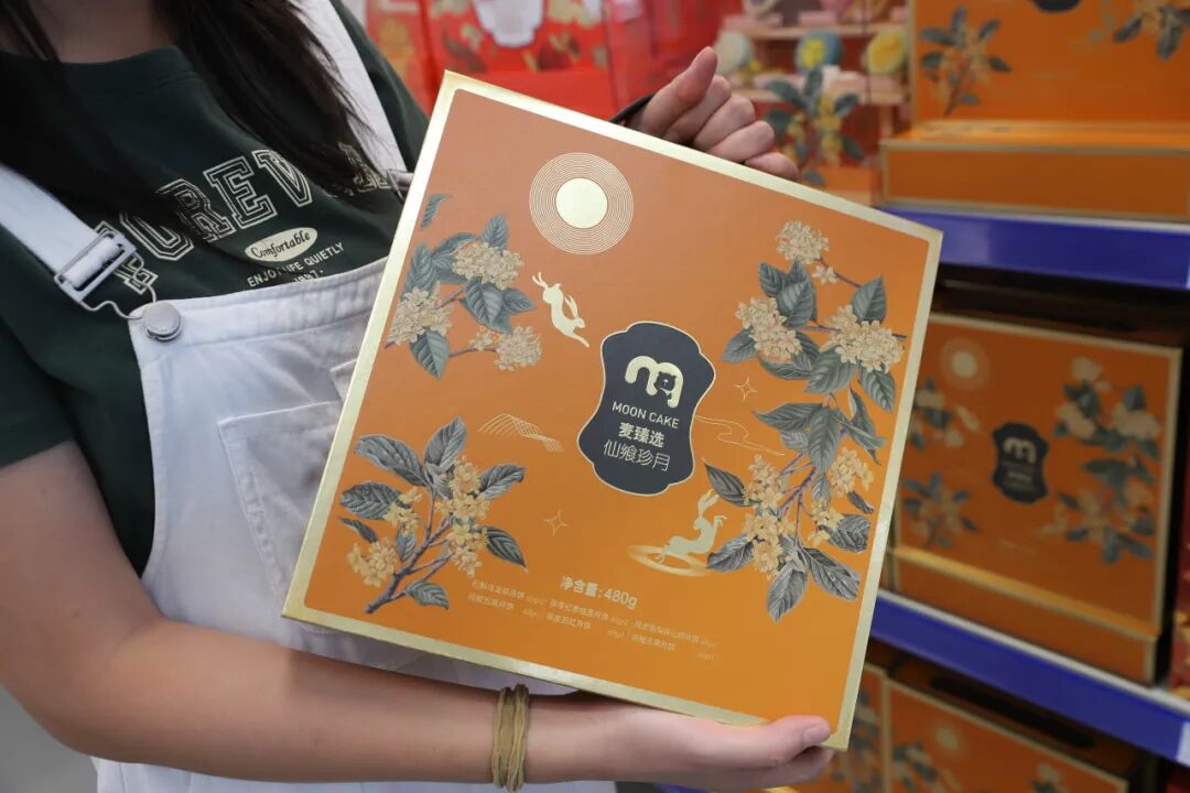 麦德龙超市专为中秋节设置了月饼专区。货架上,豆沙、莲蓉、五仁、蛋黄、流心等多种口味的月饼礼盒令人眼花缭乱。在月饼礼盒的包装上,该超市结合自主品牌“麦臻选”,推出了手提款、复古风、现代简约等不同风格的礼盒,且每款礼盒都融入了玉兔、月亮、灯笼等中秋文化元素。