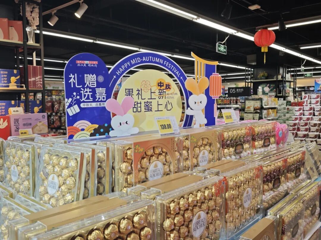 随着中秋节临近,“团圆经济”也迎来了它的高峰期。万江各大商超、便利店、烘焙店、水果店将月饼礼盒、酒类礼盒、茶类礼盒、水果礼盒摆放在显眼位置。为了吸引更多消费者,商家们还推出了如满减、折扣、买赠等优惠促销活动,进一步激发消费者的购买热情。