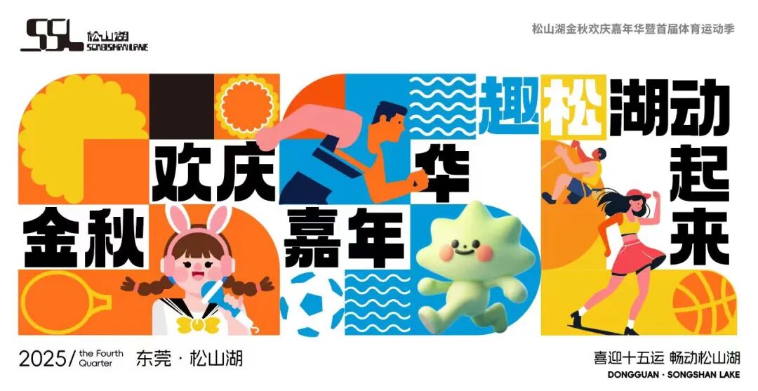 除双年展外,今年十一小长假恰逢国庆、中秋双节并至,假期的快乐buff叠满,9月27日—10月8日,松山湖金秋欢庆嘉年华暨首届体育运动季强势来袭。