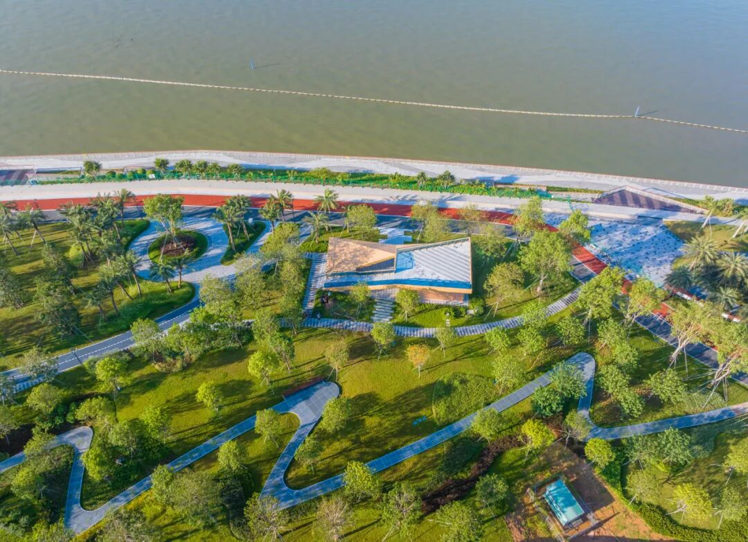 此前,该段原岸线存在防护能力不足、公共可达性差、沿线绿化破碎、景观单调等问题。东莞黄金海岸东龙段项目设计建设综合考虑海湾环境治理、生态修复与亲海品质提升,提出“水体工程+园建工程+海绵设施”一体化方案,实现生态与功能并重。
