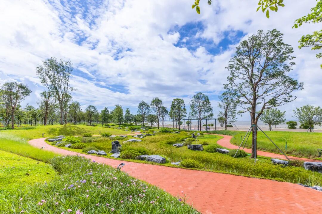 经过一年的高标准建设,如今,东莞黄金海岸东龙段岸上区域全新亮相,林荫漫游道、植被景观、游乐嬉戏场地、休闲运动设施已基本完成施工,将为游客提供观赏、游玩、休憩的活力空间。