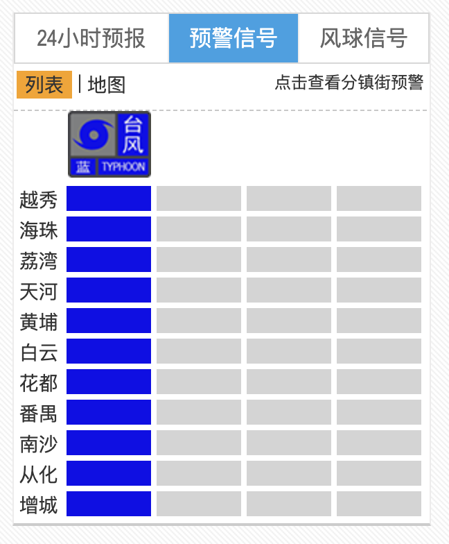 截至9月22日13时,广州预警信号发布情况。广州天气网截图