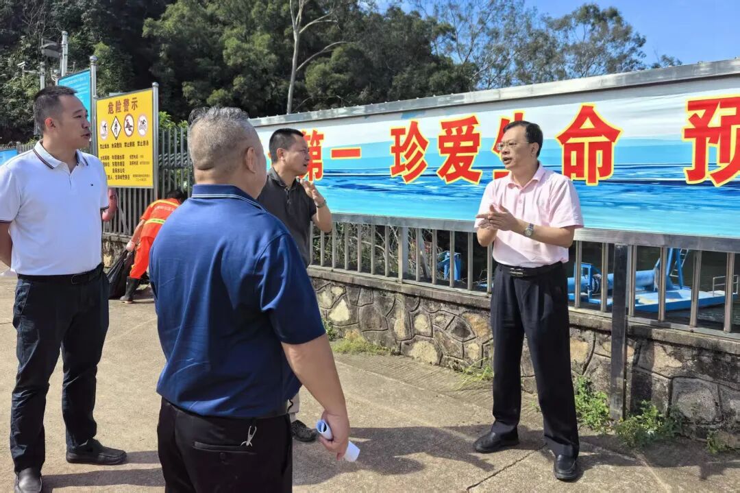 塘厦镇党委书记黄贵洪于9月23日率队深入一线调研督导防汛防风准备工作。督导组先后检查了牛眠埔水库和观澜河莆心湖居委会段堤防等重点区域。在水库现场,督导组重点查看了水位、大坝安全及泄洪设施,强调要坚决快速完成溢洪道下方等重点风险区域人员的转移安置,确保不漏一人。对于存在缺口的薄弱堤防,督导组要求立即组织力量用沙包高标准封堵,并在台风影响增强前完成加固,同时加强巡查值守。督导组强调,全镇须克服麻痹思想,严格落实责任制,紧盯水库、河道、低洼点等重点部位,加强隐患排查和应急准备,保障全镇安全度汛。