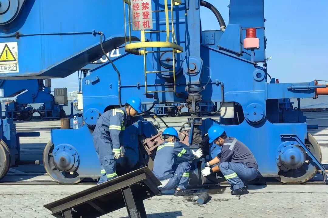 三大码头所有岸桥、门机、场桥已全部完成锚定加固。流动机械及车辆除防台专用设备外,均已停放至空旷区域并采取平置、塞三角木等防风措施。空箱全部完成绑扎加固,重箱调平加固工作正有序推进,确保箱区安全稳定。