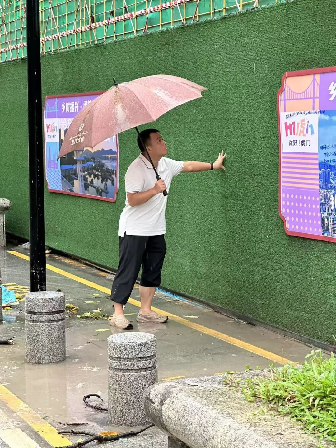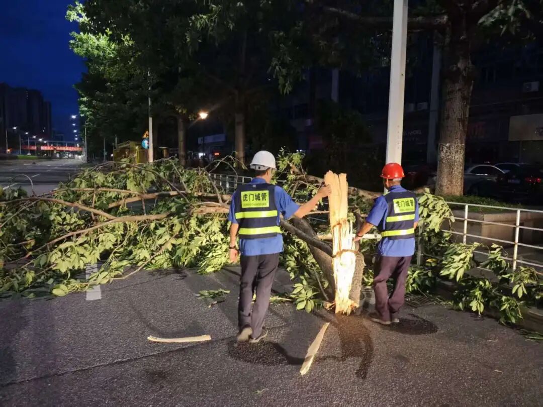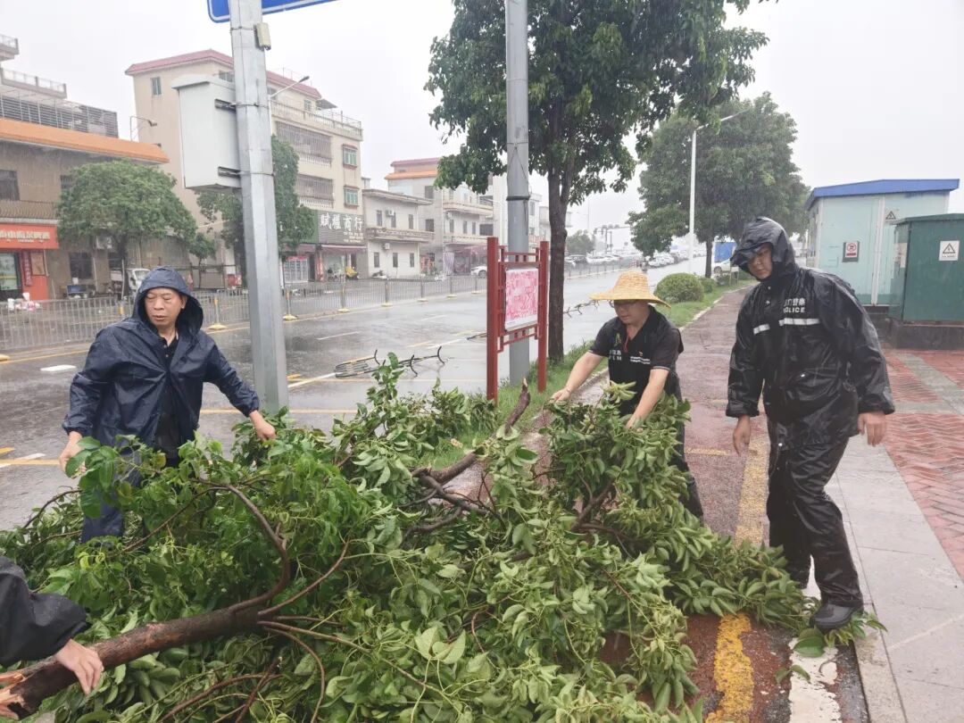 虎门应急管理分局联合交警及社区人员,及时清理断枝树木,清理雨水井,防止下水道堵塞。用防汛沙袋堵塞雨水口,防止海水倒灌。