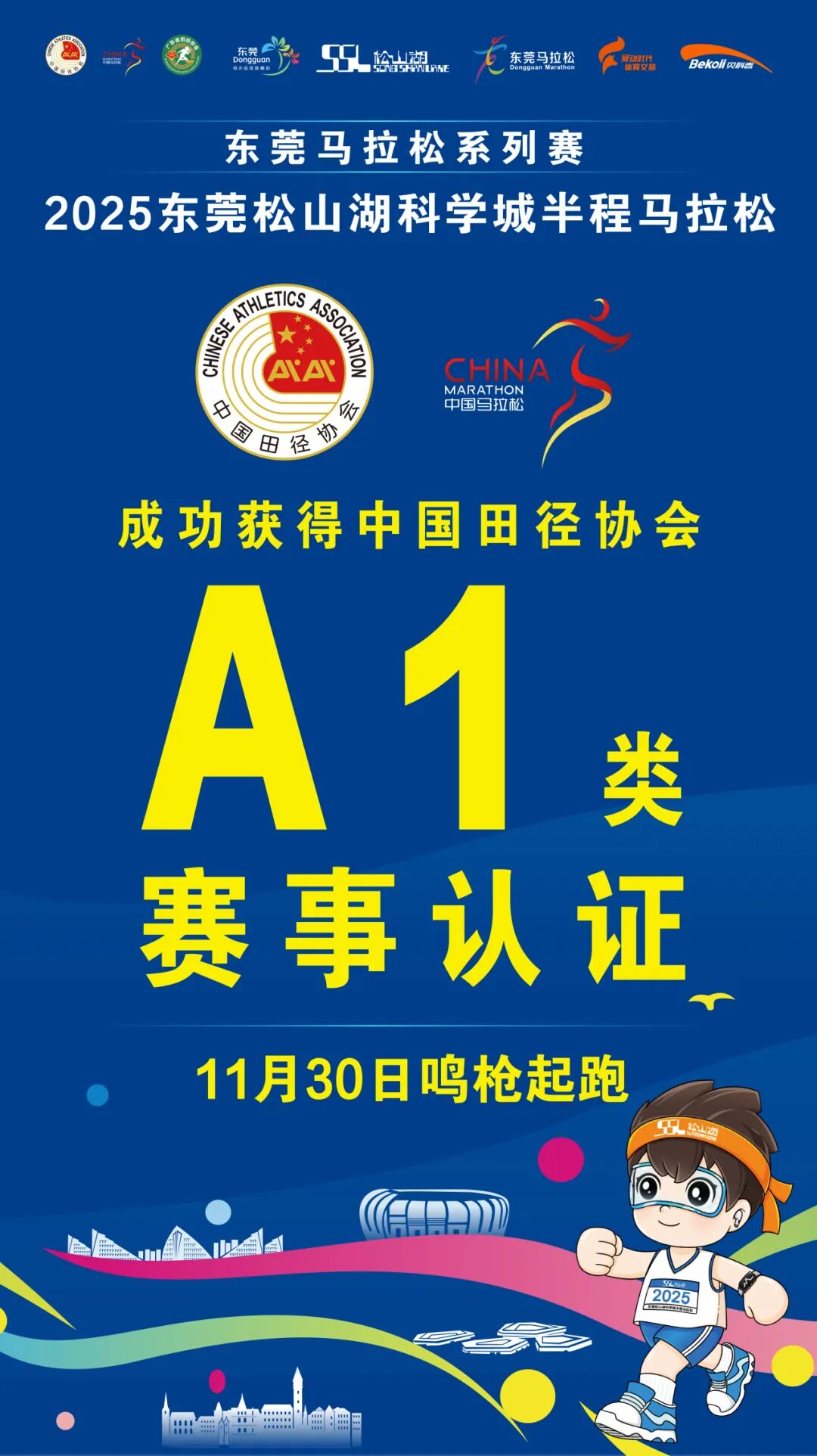 东莞马拉松系列赛2025东莞松山湖科学城半程马拉松成功获得中国田径协会A1类赛事认证!