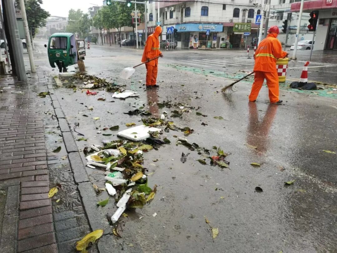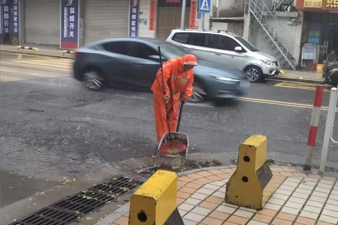 风雨过后,最忙碌的身影之一便是我们的“城市美容师”。企石城管与企城公司迅速行动,组织环卫工人和车辆对路面残留的落叶、淤泥和垃圾进行集中清理和转运,对各个垃圾收集点的生活垃圾进行及时清运,确保“日产日清”,防止细菌滋生。