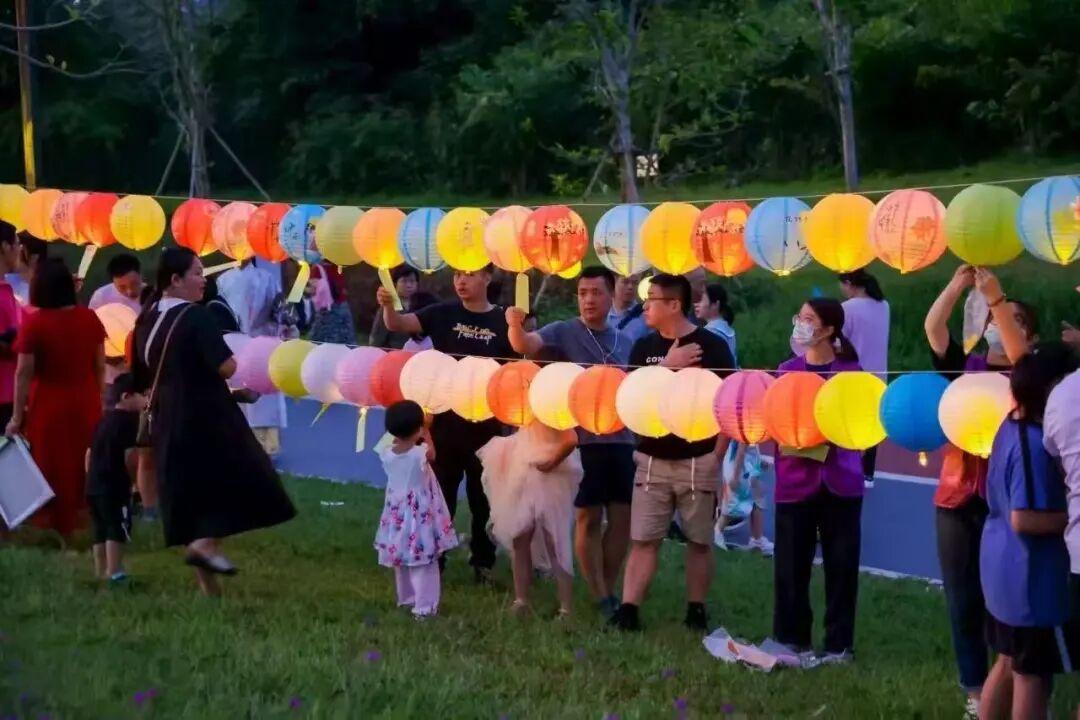 火红的鱼灯高高举起,巡游队伍游走在游客中,鼓乐声、喝彩声交织,仿佛穿越时空,回到了百年前的盛景。这热闹的巡游只是开端,当非遗与中秋正式相遇,接下来全家都在这里尽情玩耍,让团圆时光满是传统韵味。