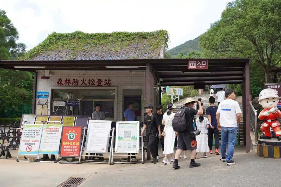 银瓶山森林公园林间道路上,大批游客或结伴漫步,或携家带口而行,阳光透过繁茂枝叶洒落,清新绿意与轻松氛围萦绕身旁。森林防火检查站旁,各类宣传牌清晰展示着防火公告、入园须知,工作人员有序引导,游客们有条不紊地进入园区,既保障了游览秩序,也传递着文明游园的理念。