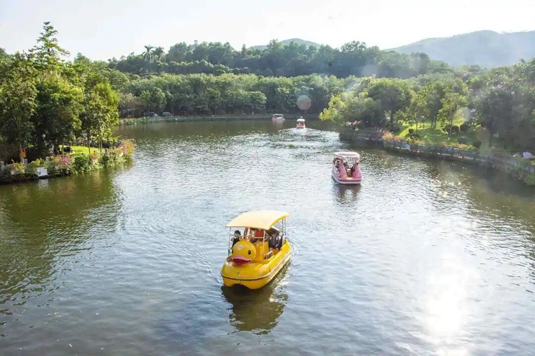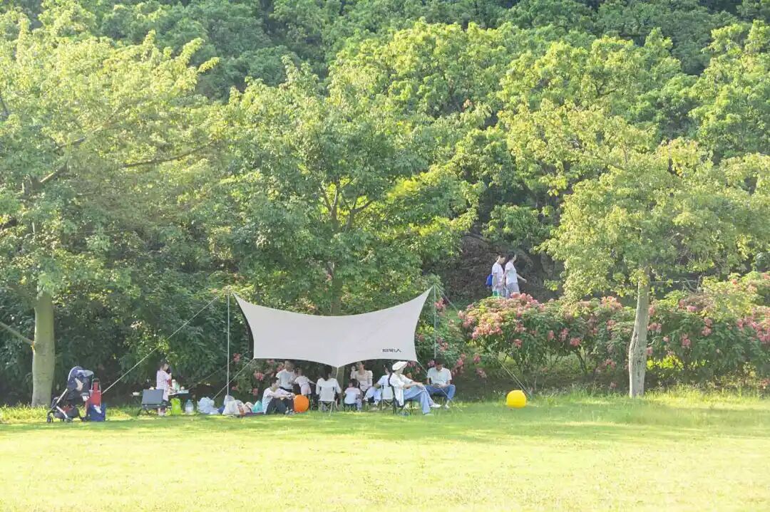 大屏嶂森林公园的澄澈湖面上,游客们乘船缓缓穿行,粼粼波光与远处葱郁山峦、岸边缤纷花木相映成趣,亲水游乐的欢畅尽显无遗;开阔的草坪间,露营天幕搭起一方方小天地,亲朋好友相聚于此,或闲坐畅谈,或伴孩童嬉戏,勾勒出温馨自在的图景。