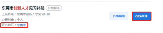 网上申报:符合条件的申请人,填写申请表,经单位负责人确认无误后签字并加盖公章,准备好相关材料,在申报期限内(2025年12月1日—2025年12月31日)登录“广东政务服务网”门户网站(网址:https://www.gdzwfw.gov.cn/) 选择对应补贴名称(东莞市创新人才综合补贴、东莞市创新人才能力提升培养资助、东莞市创新人才见习补贴),按要求填写并上传材料办理申请,逾期将无法申请,具体申报流程详见附件。