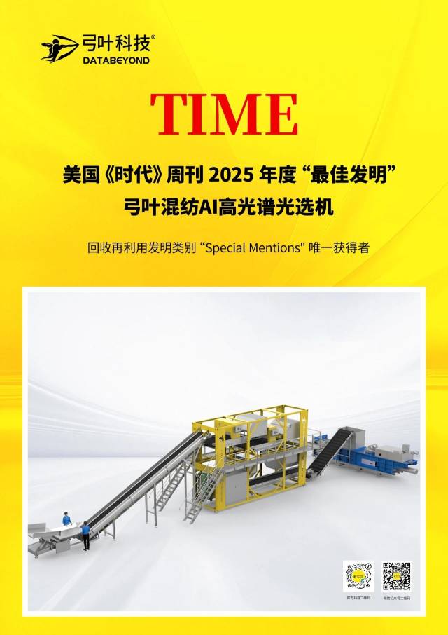 此次登榜的5款产品中,弓叶科技的混纺AI高光谱光选机斩获“特别提名”,荣获该榜单“Special Mentions”,也是本届榜单“回收再利用”类别中唯一获得此项殊荣的高新技术企业,成为智能分选领域备受瞩目的创新力量。