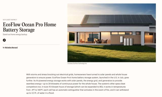 EcoFlow Ocean Pro家庭电池储能系统凭借AI驱动能源调度,可与太阳能板协同构建家庭高效能源网络。